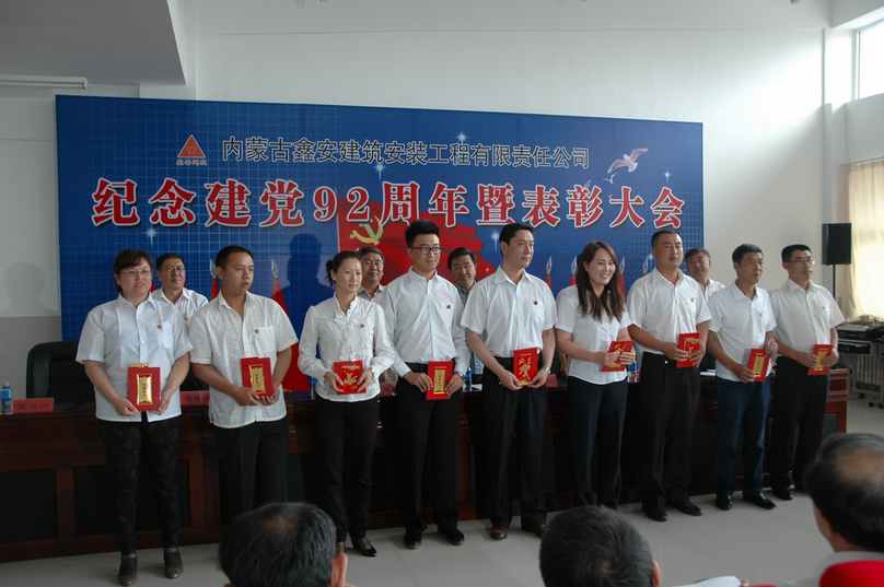 7月1日上午,内蒙古鑫安建筑安装工程有限责任公司在乌市合展小学隆重召开纪念建党92周年暨表彰大会,盟工会党组书记、工会主席马玉清同志,盟住建局党组书记、盟住建系统党委书记、局长王文玺同志,鑫安建筑公司全体党员干部共计200余人,参加了表彰大会。